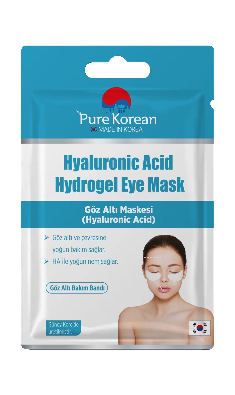 Pure Korean Hyaluronic Acid Göz Altı Maskesi Göz a altı ve çevresine Hyaluronic Acid ile yoğun bakım sağlar.; Mimik ve alın çizgisi bölgelerinde kullanıma uygundur.; Kullanım Talimatı: Cildinizi temizleyin ve kurutun.; Maskeyi yapışık olduğu tabakadan ayırın.; Vakit kaybetmeden göz altınıza yerleştirin.; 20-25 dk.; beklettikten sonra maskeyi nazikçe kaldırın ve daha iyi emilim için uygulanan alana hafifçe masaj yapın.; 1 çift maske