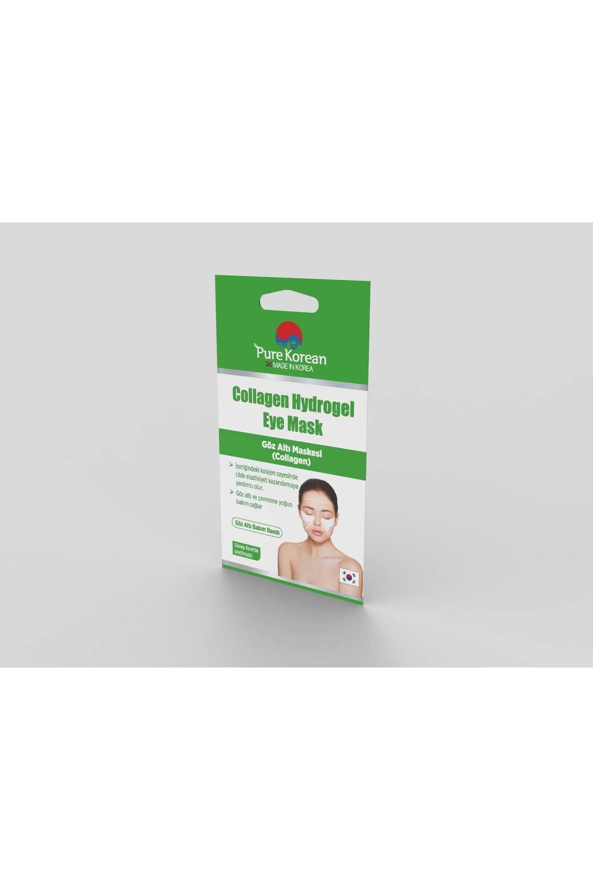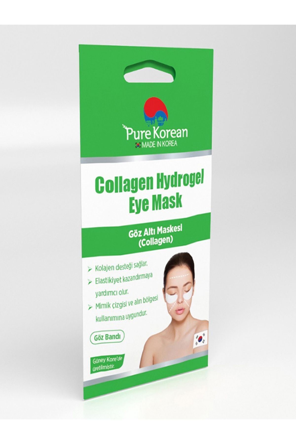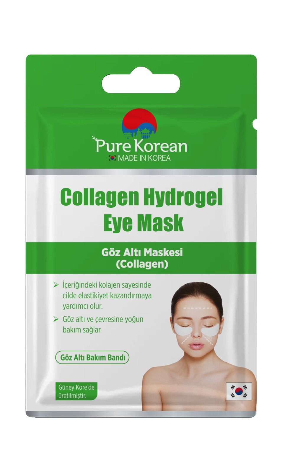 Pure Korean Kolajen Göz Altı Maskesi Göz altı ve çevresine kolajen desteği sağlar.; Elastikiyet kazandırmaya yardımcı olur.; Mimik çizgisi ve alın bölgesi kullanımına uygundur.; Kullanım Talimatı: Cildinizi temizleyin ve kurutun.; 1 çift maske maske Maskeyi yapışık olduğu tabakadan ayırın.; Vakit kaybetmeden göz altınıza yerleştirin.; 20-25 dk.; beklettikten sonra jel pedleri nazikçe kaldırın ve daha iyi emilim için uygulanan alana hafifçe masaj yapın.; 1 çift maske