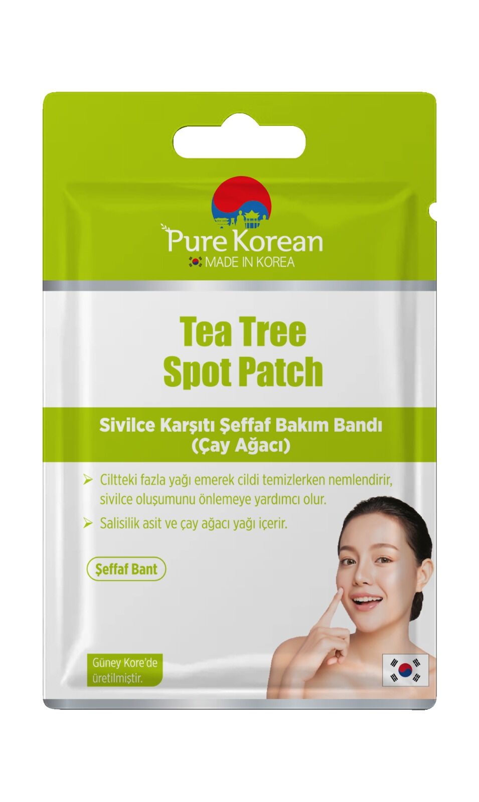 Pure Korean Akne Spot Patch Paketi - karşıtı şeffaf bakım bandı.; Akne ve oluşumunu engellemeye yardımcı olur.; Salisilik asit ve çay ağacı içerir.; Kullanım Talimatı: Cildinizi temizleyin ve kurutun.; Şeffaf bandı yapışkanlı kısımdan ayırın ve istenilen bölgeye doğrudan uygulayın.; 6-8 saat bekletin ve bandı kaldırın.; (10 adet şeffaf bant)